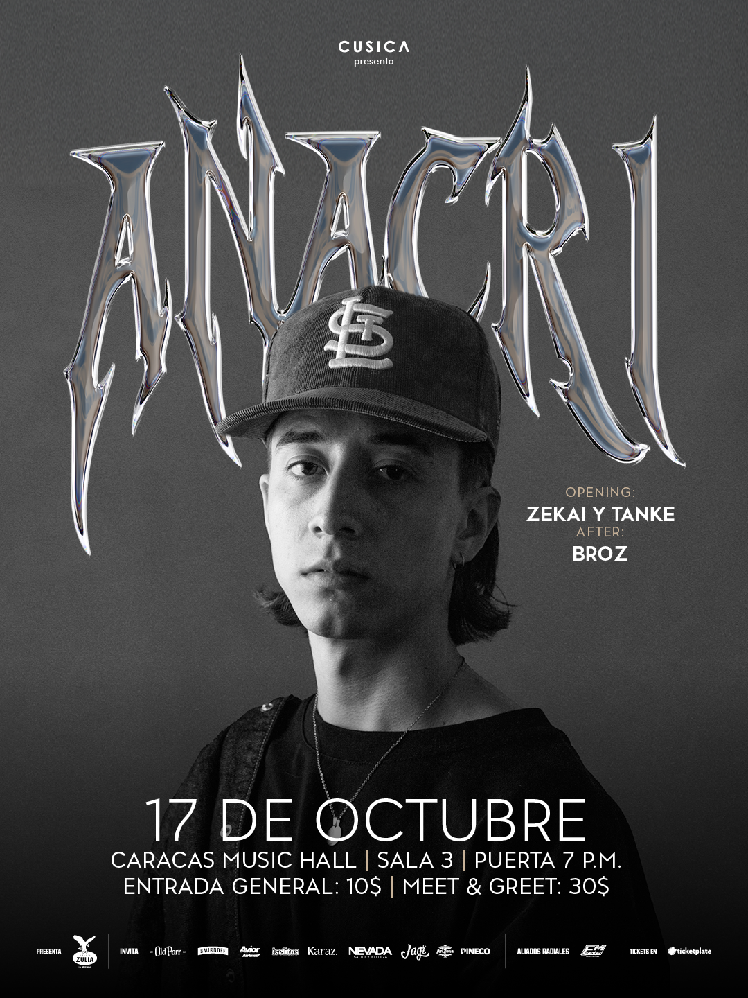 El artista y productor musical venezolano Anacri, desembarcará en Venezuela por primera vez para presentar un showcase en la Sala 3 del Caracas Music Hall (Centro Comercial Concresa) el viernes 17 de octubre. Esta presentación marca su debut en tierras venezolanas con una experiencia íntima y contundente, donde el intérprete mostrará avances de lo que será su próximo álbum DUAL y sus canciones más conocidas.