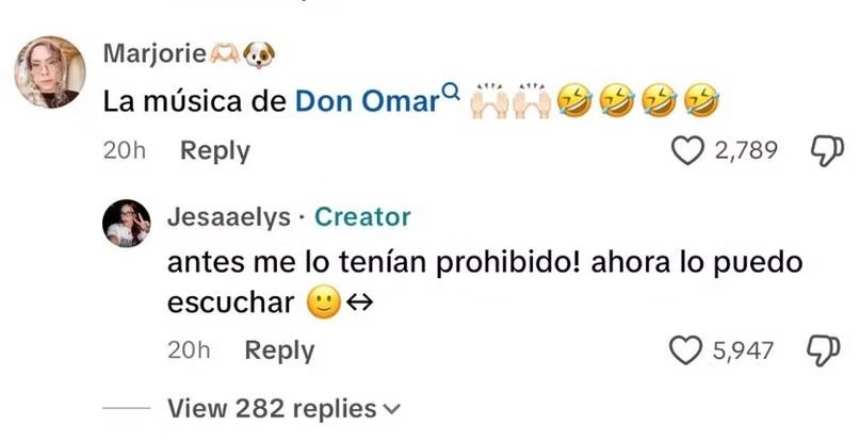 La confesión surgió de forma espontánea mientras grababa uno de sus habituales videos de maquillaje. En el clip, se escuchaba de fondo una canción del “Rey del Reguetón”, lo que llevó a una seguidora a comentarle “la música de Don Omar”. A lo que Jesaaelys respondió con naturalidad: “Antes me lo tenían prohibido, ahora lo puedo escuchar”.