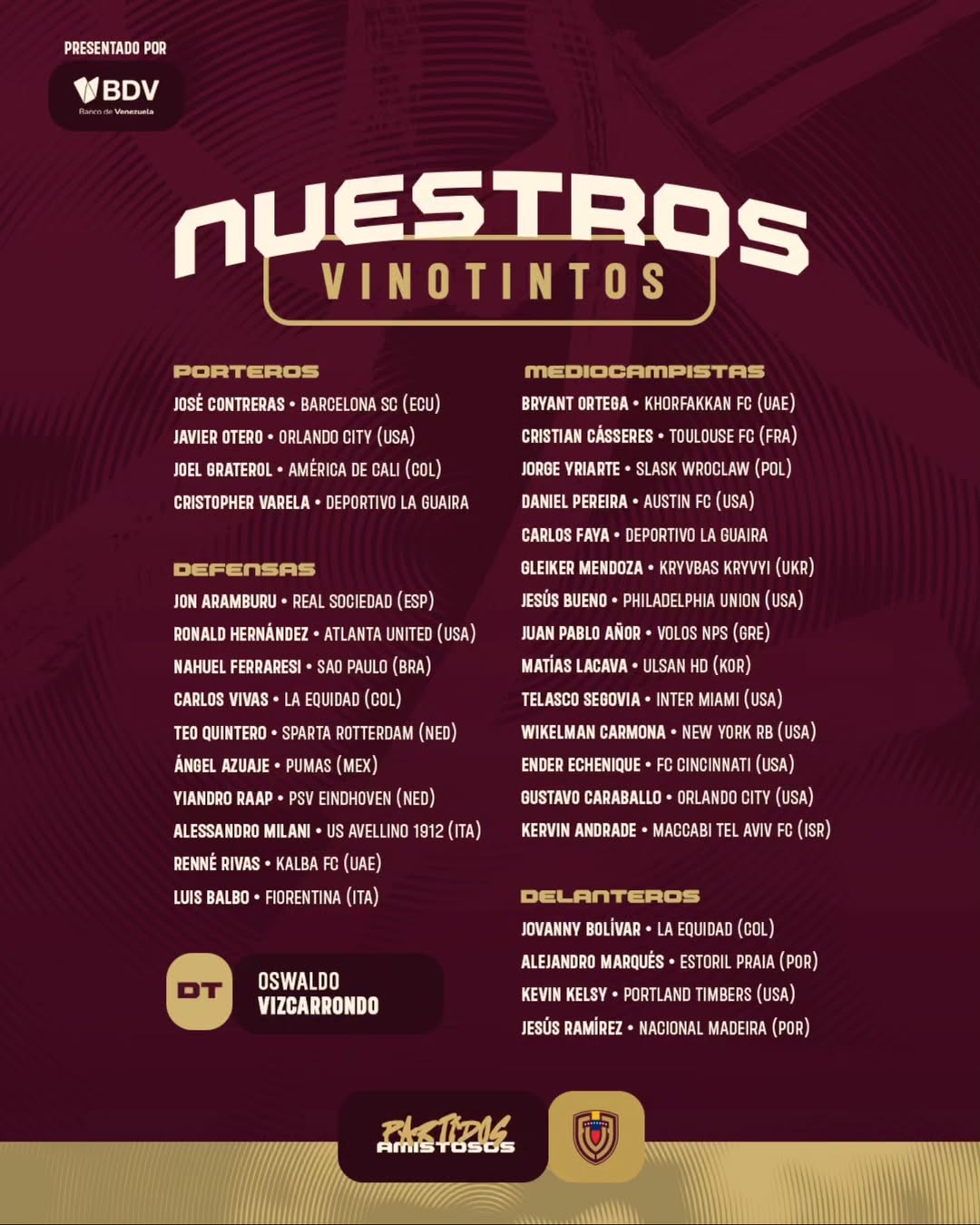Mientras que en defensa figuran nombres como Jon Aramburu, Ronald Hernández, Nahuel Ferraresi, Carlos Vivas, Teo Quintero, Ángel Azuaje, Yiandro Raap, Alessandro Milani, Renné Rivas y Luis Balbo.