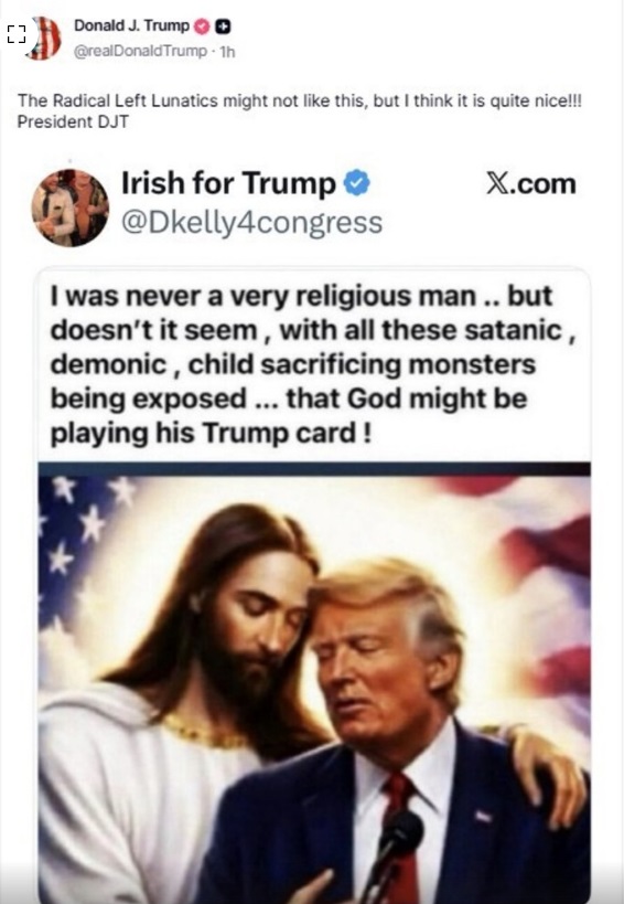 La publicación forma parte de una serie de contenidos recientes, en los cuales Trump ha recurrido a imágenes religiosas para reforzar su narrativa política.