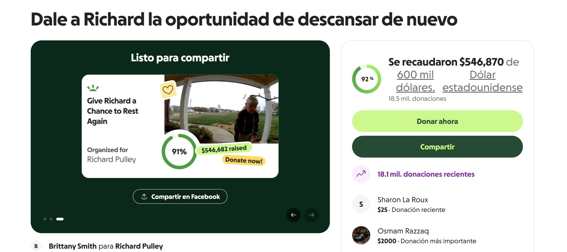 Esto desató una ola de generosidad que hasta el momento ha recaudado más de 500.000 dólares para ayudarlo a regresar a su jubilación.