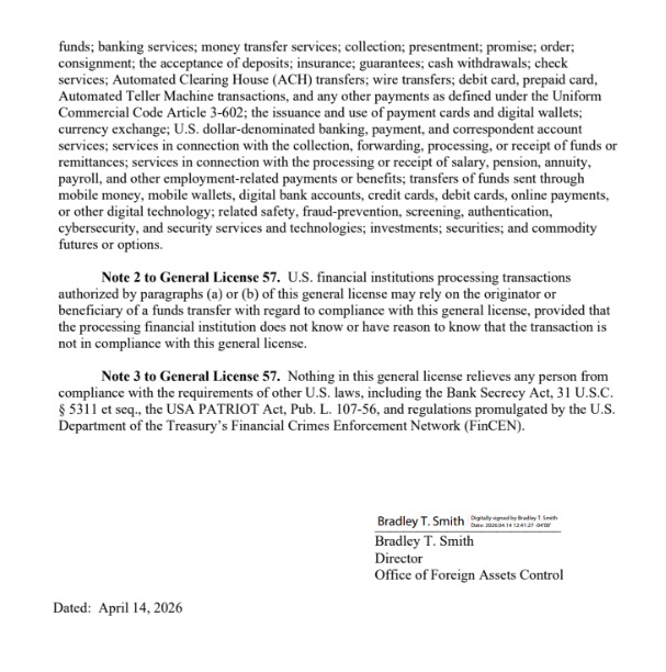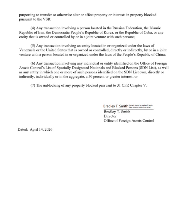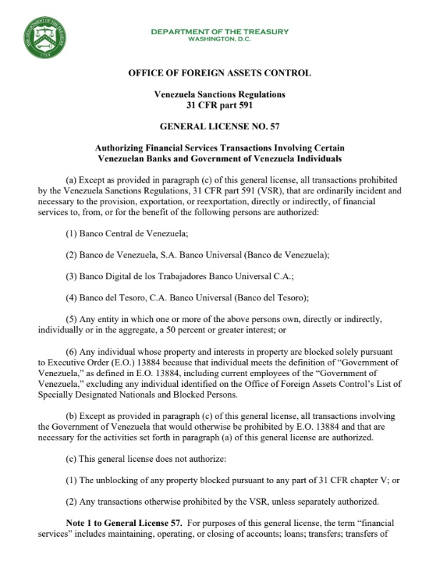 Junto a las licencias, el Tesoro publicó la directriz informativa 1248, destinada a orientar a empresas extranjeras sobre los procedimientos regulatorios y los límites operativos en esta nueva fase.