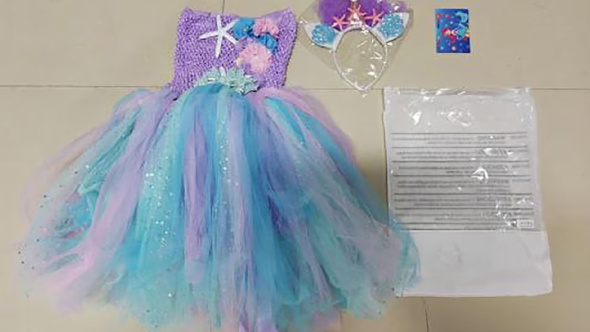 De acuerdo con la Comisión de Seguridad de Productos del Consumidor de Estados Unidos (CPSC, por sus siglas en inglés) se ordenó el retiro de aproximadamente 1.300 disfraces de sirena de la marca SKCAIHT, fabricados en China y comercializados en Amazon entre marzo de 2022 y julio de 2025.