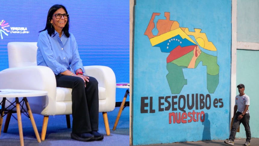 VIDEO: Delcy Rodríguez respondió al ‘escándalo’ del presidente de Guyana por su broche con el Esequibo