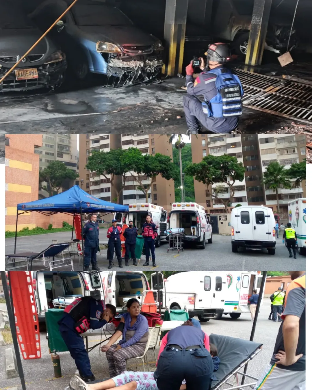 «Un incendio en un sótano de la residencia antes mencionada, afectó directamente a 11 vehículos, y otros con afectación parcial», dijo Palacios. Miembros de los Bomberos de Caracas se desplazaron al edificio para atender la situación.