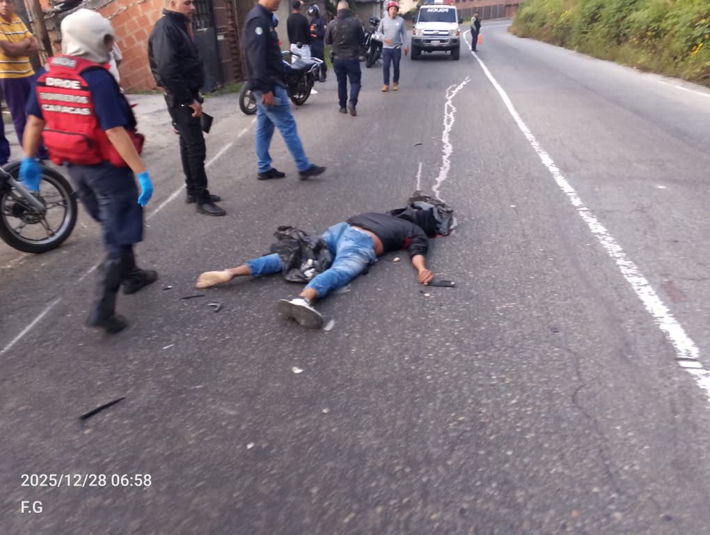 «Atentos y pendientes: esta mañana 06:10am 28dic 2025, ocurrió un accidente fatal con un motorizado en Filas de Mariche pasando la Urb Ciudad Mariche. Municipio Sucre», escribió el jefe policial en su cuenta de X (Twitter) junto a fotografías del siniestro.