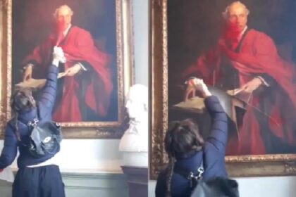 VIDEO: Activista propalestina destruyó retrato de primer ministro británico que apoyó creación de Israel