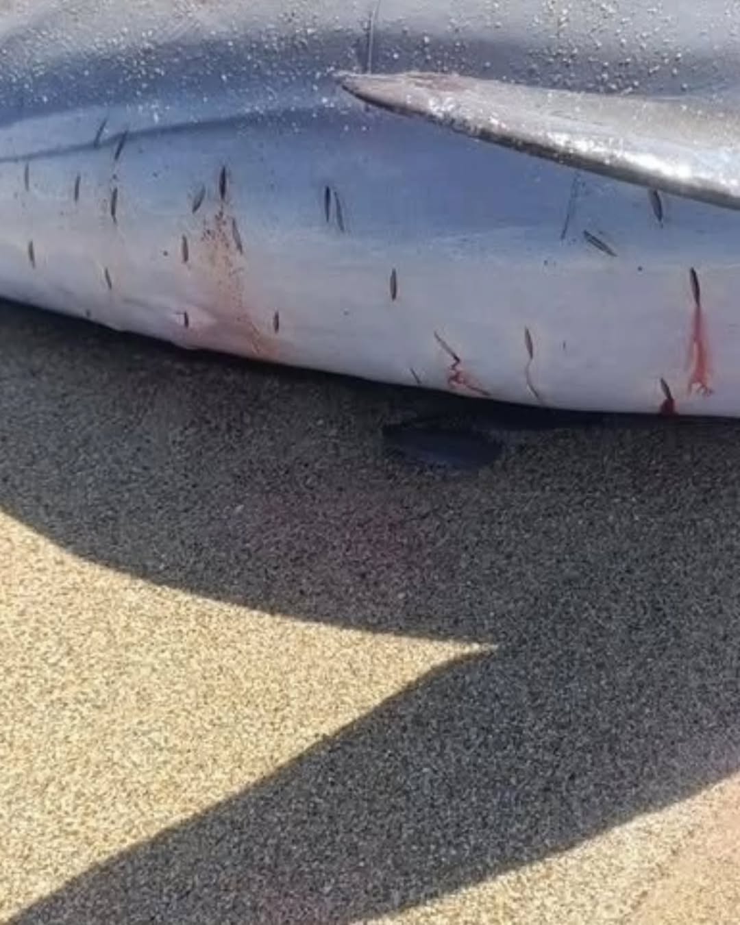 En un primer momento, pensaron que se trataba de un varamiento natural y se acercaron a ayudar. Sin embargo, al detallar de cerca al delfín descubrieron que estaba muerto y con múltiples heridas abiertas de las cuales aún brotaba sangre, lo que sugiere que el deceso ocurrió pocas horas antes de su localización.