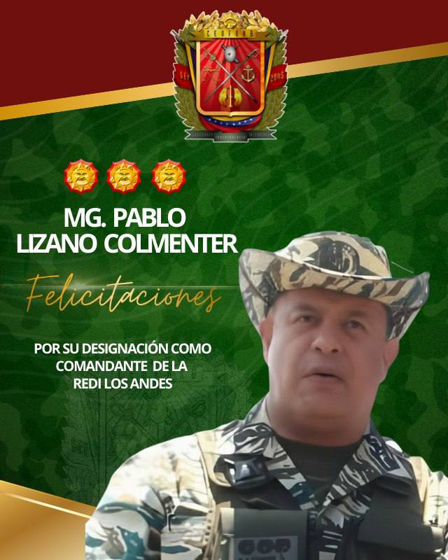 En primer lugar, Hernández Lárez dio a conocer la designación del mayor general Pablo Lizano Colmenter al frente de la Redi de Los Andes, que abarca los estados de Mérida, Táchira y Trujillo, en el oeste del país.