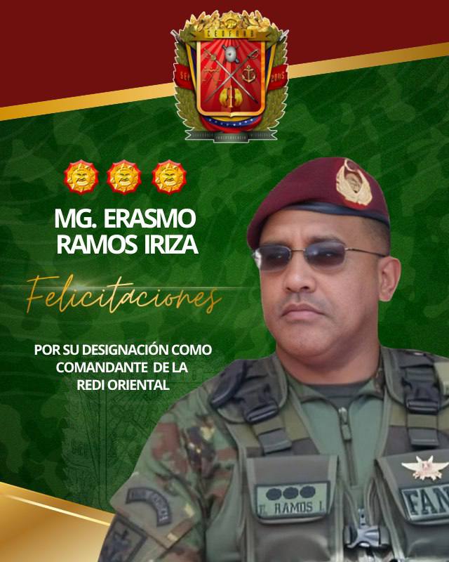 Asimismo, designó al mayor general Erasmo Ramos Iriza como comandante de la Redi Oriental, que comprende los estados costeros de Anzoátegui, Monagas y Sucre, en el noreste del país.