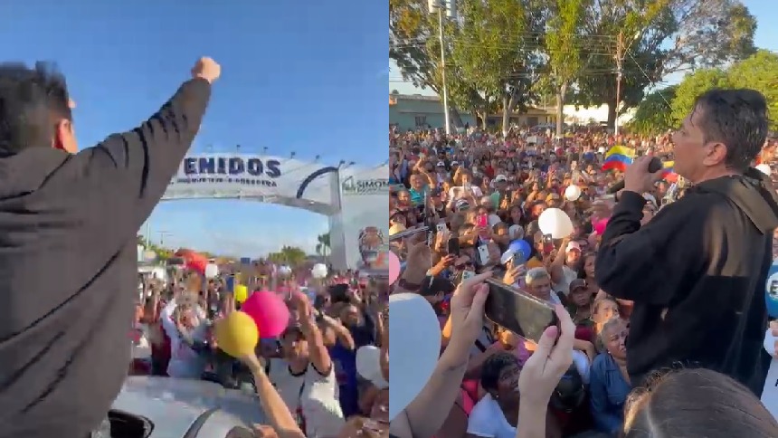 Al bajarse del vehículo, numerosas personas abordaron a Paraqueima para abrazarlo con efusividad y alegría. De inmediato, comenzó a recorrer a pie, acompañado de sus simpatizantes.